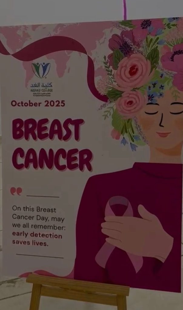 جاءت الفعالية في إطار جهود الكلية لرفع مستوى الوعي الصحي حول سرطان الثدي، والتأكيد على أهمية الكشف المبكر ودوره في الوقاية والعلاج. وتضمّن المعرض أركانًا تثقيفية قدّمتها طالبات التمريض، تناولت موضوعات متعددة مثل الفحص الذاتي للثدي، وعوامل الخطورة، وأهمية الماموغرام، وأساليب الوقاية، والدعم النفسي إضافة إلى توزيع منشورات توعوية وهدايا رمزية.