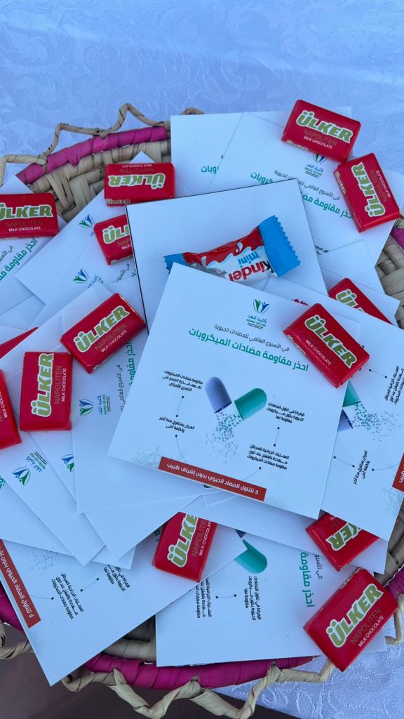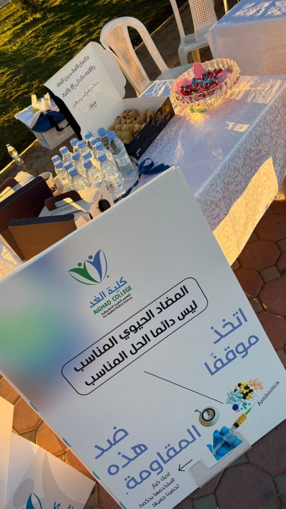 وشملت الفعالية أركانًا توعوية قدمها منسوبو وطلبة كلية الغد، تم خلالها التعريف بمفهوم المضادات الحيوية، وبيان الفرق بين العدوى البكتيرية والفيروسية، إضافة إلى تسليط الضوء على مخاطر مقاومة المضادات الحيوية وتأثيرها على الصحة العامة.